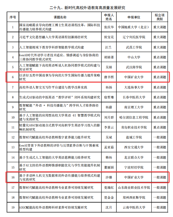 多项高层次教改课题的获批,是对外文学院长期以来坚持教学改革、重视教育研究成果转化应用的有力肯定。学院将以此为契机,持续支持教师开展高水平教学研究,不断深化外语教育内涵建设,推动人才培养质量迈上新台阶。