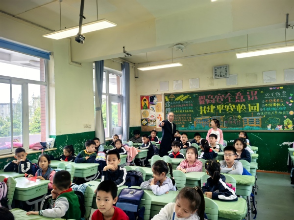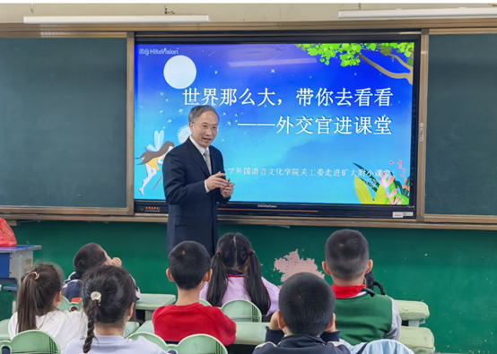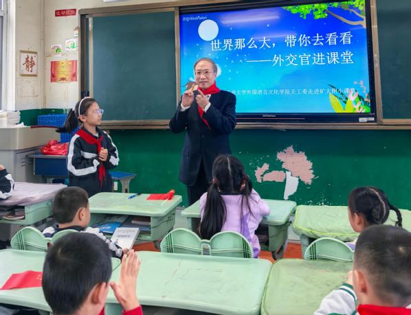 10月13日下午,外文学院关工委走进矿大附属小学,举行“世界那么大,带你去看看——外交官进课堂”主题活动。活动特邀学院原党委书记、驻德国大使馆教育处一等秘书何康林教授主讲,学院关工委副主任朱正中,学院办公室主任陈娅、院关工委秘书长闫瑾参加活动。三(一)班班主任张梦媛老师主持活动。
