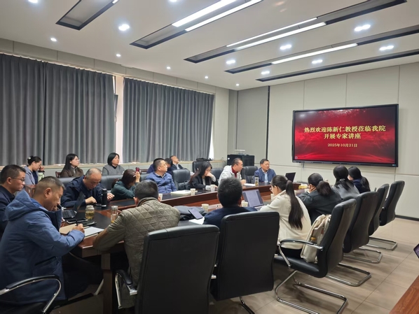 10月21日下午,第54期“博雅”学术系列活动(学术论坛)在外文学院B521会议室举办。南京大学外国语学院陈新仁教授围绕“ESP服务新文科建设的定位与路径”作专题报告,并对我院教师2026年国家社科基金申报进行辅导。外文学院院长祖大庆主持论坛,学院部分教师参加论坛。
