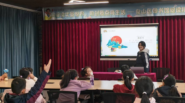 为弘扬传统文化,增强学生的社会实践能力,10月25日下午,外国语言文化学院清新青年志愿者协会与泉山区图书馆在泉山区儿童图书馆联合举办了“巧手颂秋意,重阳寄深情”的重阳手工活动,吸引众多学生志愿者与小朋友参与。