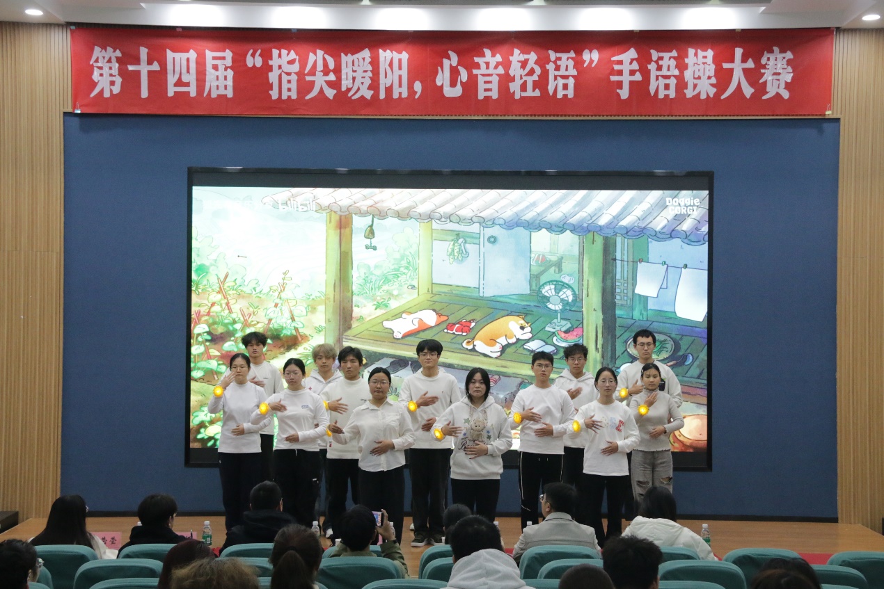 本次大赛自启动以来,得到了各学院的积极响应和广大学生的热情参与,初赛环节,来自11个学院的18支代表队各展风采,最终10支队伍脱颖而出晋级决赛。决赛现场,各参赛队伍精神饱满,精心编排,以整齐划一的动作,饱满真挚的情感演绎了《逆光》、《如愿》、《我乘着风飞来》、《裂缝中的阳光》等经典曲目,灵动的指尖上,不仅传递着无声的语言,更凝聚着团队的协作与力量;悠扬的旋律里,既有对生活的热爱,也有对心灵成长的追求,他们以指尖为笔、以心灵为墨,演绎了一场兼具视觉美感与情感温度的视听盛宴。最终大赛共评选出一等奖3名、二等奖3名、三等奖4名、鼓励奖8名。