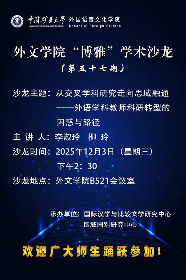 外文学院“博雅”学术系列(总第五十七期)学术沙龙 从交叉学科研究走向思域融通 ——外语学科教师科研转型的困惑与路径