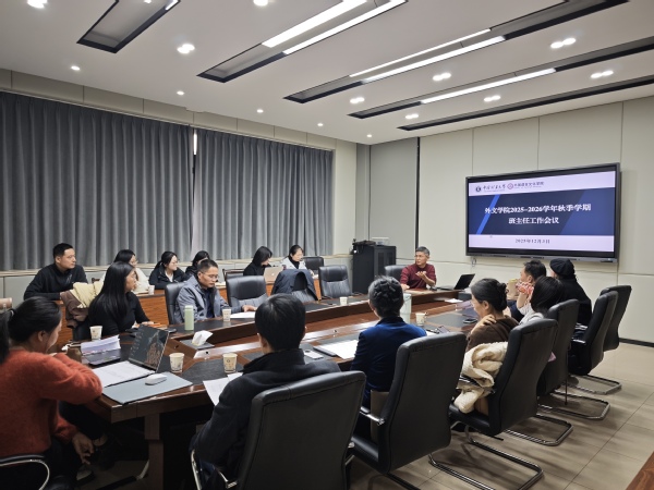 为进一步提升外文学院班主任队伍建设,凝聚育人共识,12月3日,学院在外文楼B521会议室举行2025-2026学年秋季学期班主任会议,各年级班主任、辅导员参加,会议由院党委副书记朱正中主持。