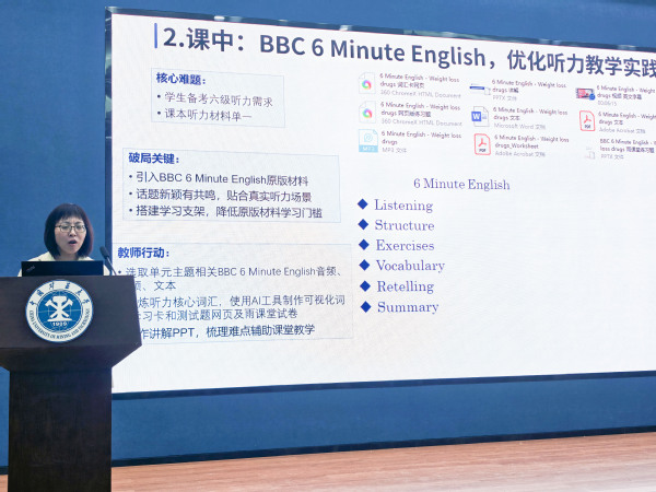 刘婷婷作动员讲话,对“外语教学共同体赋能计划系列活动”提出明确要求。她强调,大外教学应坚持高标准,教师要全面重视学术英语教学,积极利用数智赋能技术推动教学与科研协同发展。外研社都恺在线进行了iWrite软件的实操演示。葛树慧老师代表其团队7位成员,以“‘动’与‘用’:小改变撬动大课堂—学术英语课前、课中、课后的实操探索”为题,分享了教学心得。团队教师在教学中展现出的“诚心、细心、耐心、爱心”,深深启发和鼓舞了在场教师。