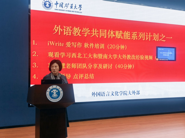 本次研讨会围绕三方面内容展开:iWrite(“爱写作”)软件实操培训、西北工业大学与暨南大学大外教改经验视频学习,以及葛树慧教学团队先进经验分享与研讨。