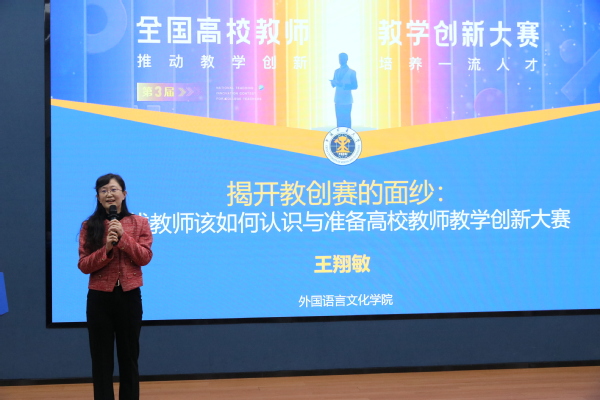 为帮助一线教师深入了解全国高校教师教学创新大赛(简称“教创赛”),提升教学创新能力和备赛水平,4月16日下午,外文学院与教师教学发展中心面向全校教师联合举办了教创赛专题讲座,特邀第三届教创赛全国一等奖获得者、外文学院王翔敏教授担任主讲嘉宾。
