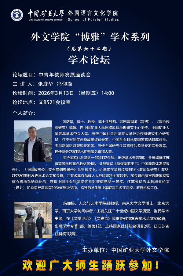 中国矿业大学外国语言文化学院2026年硕士研究生一志愿复试录取工作实施...