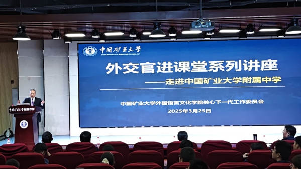 3月25日下午,外文学院关工委 “外交官进课堂系列讲座”走进矿大附属中学,前中国驻德国大使馆教...